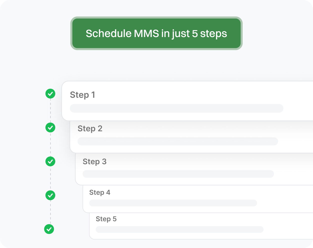 Improve Message Delivery with Schedule MMS Enhance your messaging strategy with Dialaxy’s Schedule MMS. Send the multimedia content to the recipients at optimal times to maximize engagement and impact. Sign upRequest a Demo Endorsed by top industry leaders Trusted by industry experts for excellence and innovation. What is a Schedule MMS? A schedule MMS is a multimedia message, like a photo, video, GIF, or audio clip, that you set to be sent at a specific time and date in the future. The system delivers it automatically at that moment. This is especially useful for campaigns or announcements where visuals make a bigger impact. For businesses, whether a startup or a large enterprise, it’s a powerful way to stay visible and engaging. Scheduling MMS ensures your message reaches your audience when they are most likely to see it. It’s an easy way to stay ahead, boost customer engagement, and keep your communication both timely and visually rich. How to Schedule an MMS with Dialaxy? Scheduling an MMS with Dialaxy is straightforward and effective. Here’s how you can do it: Log in to your Dialaxy account. Go to the Message Logs to manage your MMS. Create a new message, type your text, and upload your media (image, video, or audio). Select the “Schedule MMS” option to set future times, and select the date and time you want to send the MMS. The multimedia content will be scheduled and delivered to the recipients at a set date and time. What is a Schedule MMS? A schedule MMS is a multimedia message, like a photo, video, GIF, or audio clip, that you set to be sent at a specific time and date in the future. The system delivers it automatically at that moment. This is especially useful for campaigns or announcements where visuals make a bigger impact. For businesses, whether a startup or a large enterprise, it’s a powerful way to stay visible and engaging. Scheduling MMS ensures your message reaches your audience when they are most likely to see it. It’s an easy way to stay ahead, boost customer engagement, and keep your communication both timely and visually rich. How to Schedule an MMS with Dialaxy? Scheduling an MMS with Dialaxy is straightforward and effective. Here’s how you can do it: Log in to your Dialaxy account. Go to the Message Logs to manage your MMS. Create a new message, type your text, and upload your media (image, video, or audio). Select the “Schedule MMS” option to set future times, and select the date and time you want to send the MMS. The multimedia content will be scheduled and delivered to the recipients at a set date and time. How Does Schedule MMS Work? 1 Create Your Message First, you compose your MMS by adding text along with your chosen media, like a photo, video, GIF, or audio file. 2 Select Recipients Next, choose who you want to send the message to. This could be a single contact, a group, or your full customer list, depending on your campaign. 3 Set the Send Date and Time Instead of sending the MMS right away, you can pick a specific date and time for delivery. This could be minutes, hours, or even weeks in advance. 4 Platform Queues the Message Once you schedule, your messaging platform stores the MMS in its system and keeps it in the queue until it's time to send. 5 Automatic Delivery When the scheduled time arrives, the platform automatically sends your MMS to the selected recipients. No manual action is required from your end. 6 Track Performance Many platforms allow you to track delivery status, open rates, and engagement, so you can measure how well your MMS campaign performed. Benefits of Scheduling MMS in an Organization Enhanced Engagement Boost customer interaction with rich multimedia content that is sent at the most engaging times. Improve communication strategy Coordinate effortlessly with your clients by planning and scheduling MMS campaigns in advance. Cross-Time Zone Efficiency Send the multimedia messages at optimal times, regardless of the recipient's time zone. Time-Saving Automation Automate your MMS campaigns to save time and ensure timely delivery without any manual intervention. Consistent Branding Make sure your multimedia content is delivered consistently, maintaining a steady flow of communication. Rich Media Engagement Capture your audience's attention by providing engaging multimedia content. Why Use Dialaxy for Scheduling MMS? Dialaxy gives you the power to schedule prominent MMS messages that do more than just remind; they convert. You can schedule images, videos, and branded visuals for when your client needs them. It’s smart messaging that works even when you’re off the clock. Dialaxy helps reduce no-shows and boosts customer engagement with messages people actually pay attention to. You can schedule weeks in advance and have full control. One thing that sets Dialaxy apart is that you get a comprehensive platform for all your communication tools, eliminating the need to juggle. One powerful system is enough to keep your business moving. Why Use Dialaxy for Scheduling MMS? Dialaxy gives you the power to schedule prominent MMS messages that do more than just remind; they convert. You can schedule images, videos, and branded visuals for when your client needs them. It’s smart messaging that works even when you’re off the clock. Dialaxy helps reduce no-shows and boosts customer engagement with messages people actually pay attention to. You can schedule weeks in advance and have full control. One thing that sets Dialaxy apart is that you get a comprehensive platform for all your communication tools, eliminating the need to juggle. One powerful system is enough to keep your business moving. True Multimedia Flexibility Unlike other platforms that limit file types or charge extra for media support, Dialaxy lets you send rich MMS with MMS with images, audio, and even short videos. It's built for real multimedia messaging from the start. Intuitive Scheduling with Full Control With Dialaxy’s clean and user-friendly int